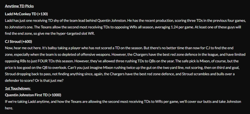 Chargers vs Texans